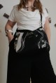 Esta mala crossbody preta de tamanho médio tem grande capacidade interior, o interior é forrado e tem bolsos. Além disso, possui bolsos nas laterais e um traseiro. A alça é ajustável, pelo que pode sempre adaptá-la ao comprimento desejado.