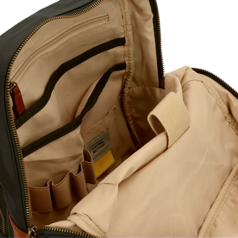 O compartimento principal é espaçoso e prático, adequado para organizar os pertences do quotidiano, seja para trabalho, passeios ou viagens curtas. Uma mochila funcional, feminina e com a identidade aventureira característica da Camel Active.