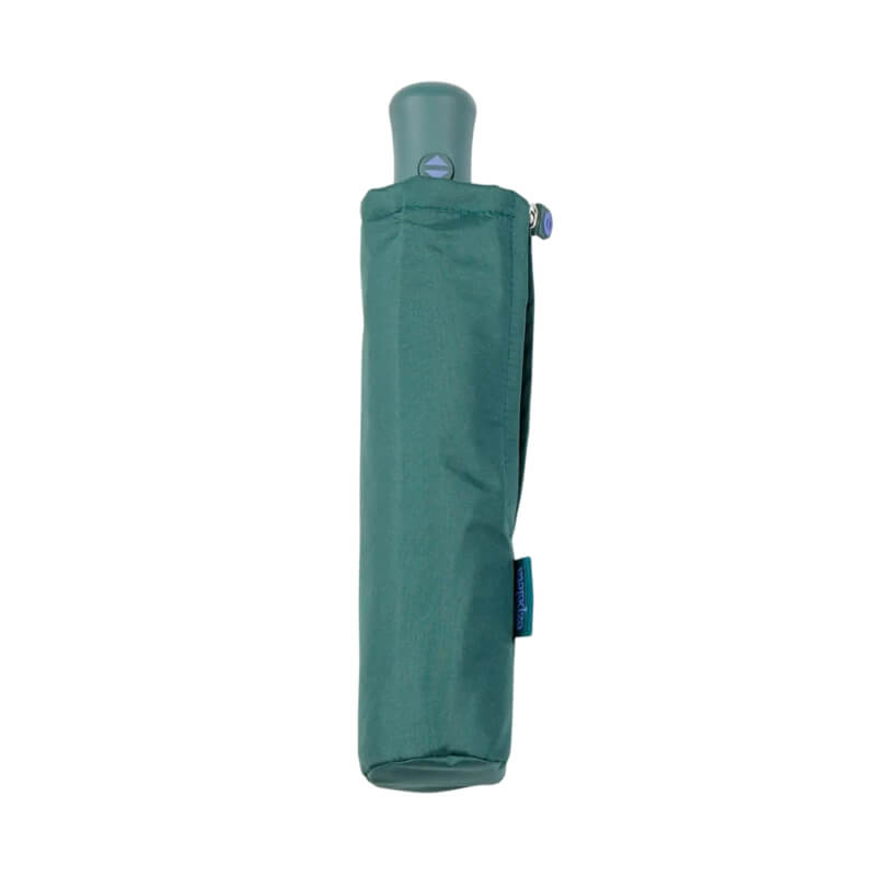 Um dos grandes destaques deste guarda-chuva é o seu tecido em PET reciclado, produzido a partir de garrafas de plástico, contribuindo ativamente para a redução de resíduos e para a preservação do meio ambiente. Além de sustentável, o tecido oferece excelente resistência à água e durabilidade, assegurando um desempenho eficaz ao longo do tempo. O formato compacto e de encolher facilita o transporte em bolsas ou mochilas.