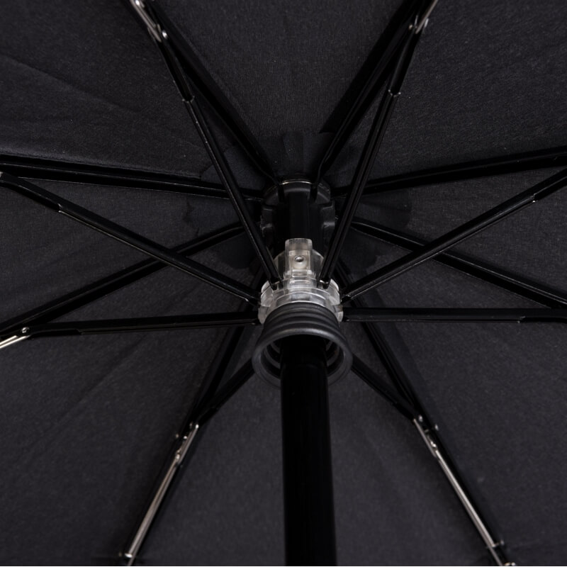 Os trilhos facilitam o dobramento do guarda-chuva, para que ele possa ser guardado no bolso em poucos segundos. Graças ao uso de materiais da mais alta qualidade, como alumínio, aço e fibra de vidro, e ao acabamento preciso, o T.200 é um verdadeiro milagre de estabilidade. Pode suportar velocidades de vento até 150 km/h no túnel de vento. Os oito ribs garantem a estabilidade adicional em qualquer direção do vento.