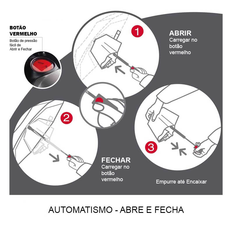 A presença da função open-close sugere facilidade de uso, permitindo que o guarda-chuva seja aberto e fechado de maneira rápida e conveniente. Graças às oito ribs, a carga do vento pode ser distribuída de maneira ideal na estrutura do guarda-chuva, suportando o ritmo do vento no túnel de vento de até 120 km/h.