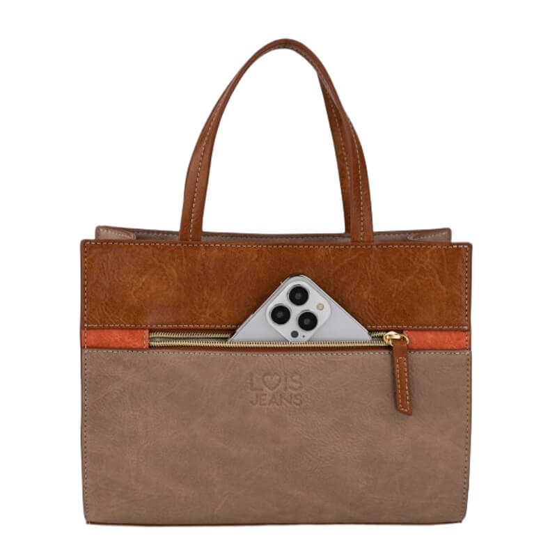 A nova coleção Kate da Lois destaca-se por um design moderno e elegante, inspirado em linhas geométricas e numa combinação de cores intemporais. Este padrão, em tons bege e castanho, cria um contraste sofisticado e equilibrado, perfeito para quem procura um acessório versátil para o dia a dia.