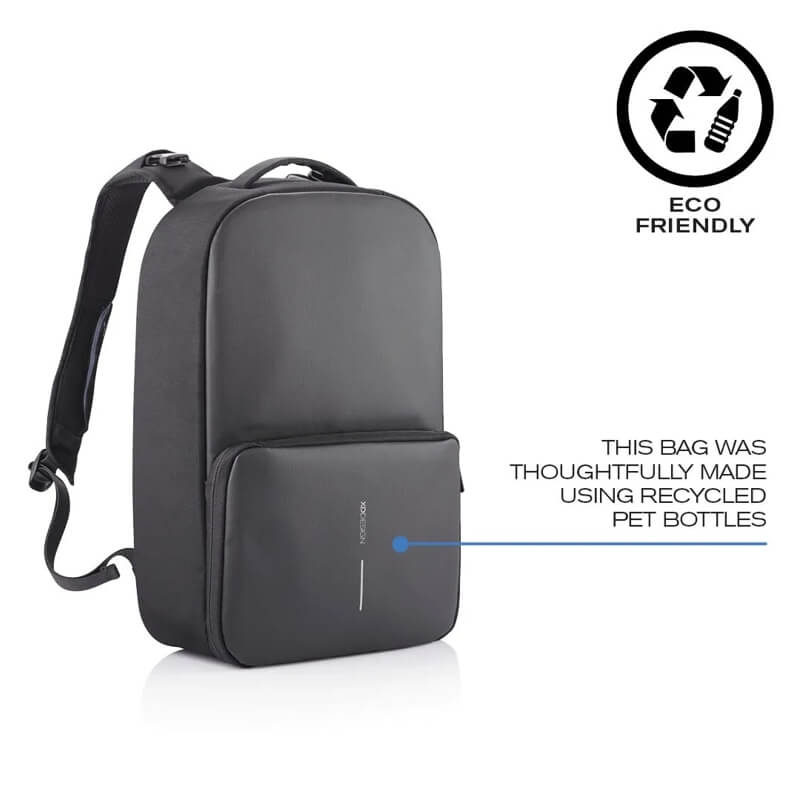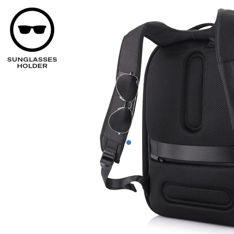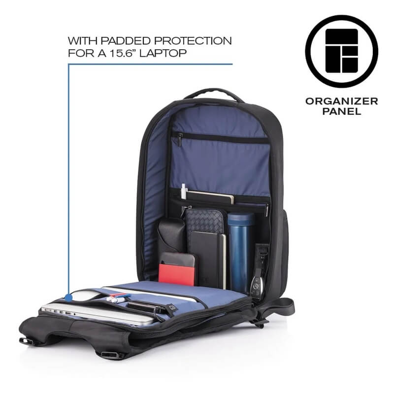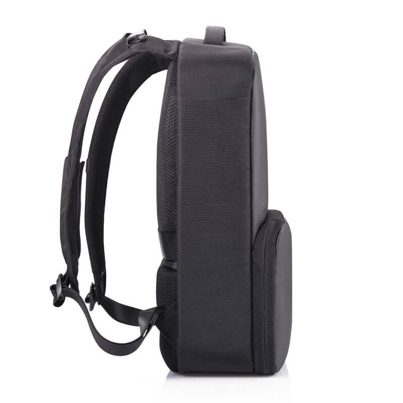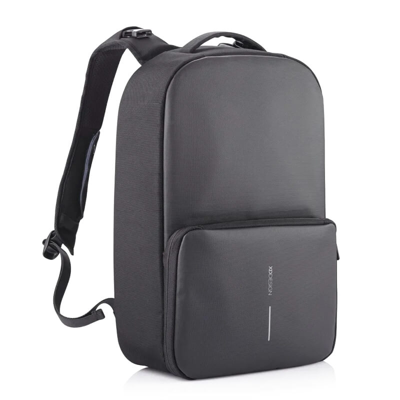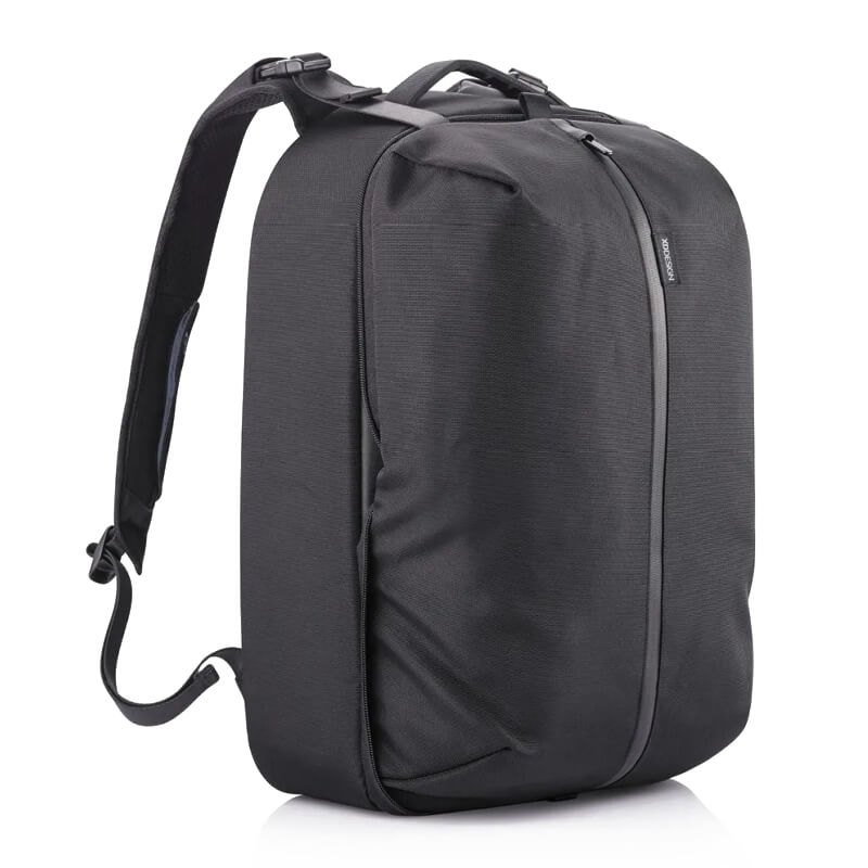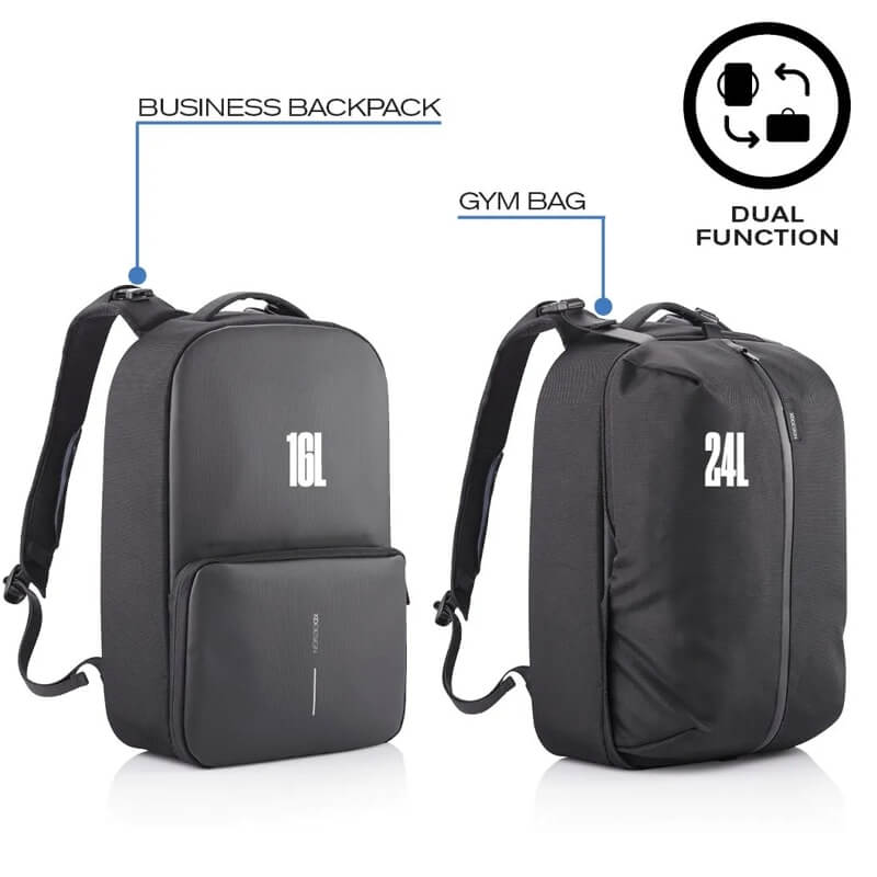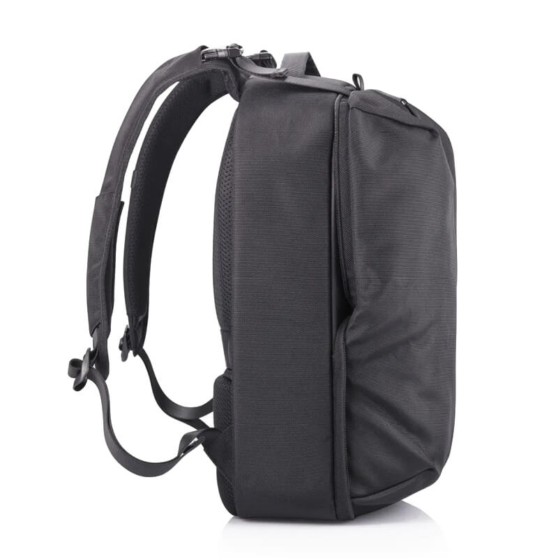 Flexível e prática, a XD Design Flex Gym é a primeira mochila/saco empresarial 2 em 1. Transforme a mochila do estilo desportivo para empresarial, expandindo simplesmente o bolso frontal. O design anti-roubo sem acesso frontal e fechos ocultos no compartimento principal garantem que leve os seus dispositivos electrónicos em segurança. Com o bolso protegido por RFID na parte traseira, podes armazenar com segurança sua carteira, telemóvel ou cartões. Esta mochila tem uma porta de carregamento USB na alça de ombro. Também inclui um suporte para óculos de sol na alça de ombro. Esta é a mochila perfeita; esteja a caminho do trabalho, da universidade ou em viagem. Marca registada XD Design®.